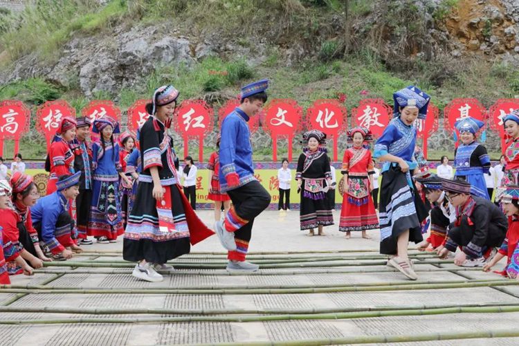 竹竿舞,又称为“打竹舞”或“跳竹舞”,是一种极富节奏感和韵律感的舞蹈。舞者们在平行摆放的多根竹竿间灵活跃动,随着竹竿的开合节奏变换步伐,展现出高超的技艺和优雅的舞姿。竹竿舞不仅考验舞者的身体协调性和节奏感,更是对团队协作和默契的考验。