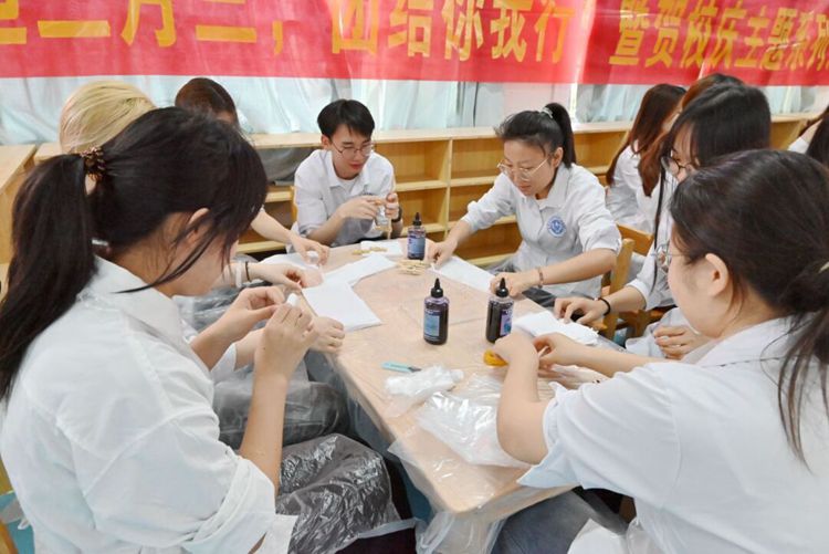 扎染是我国的非物质文化遗产,是中国民间传统而独特的染色工艺。4月8日下午,学校在教育学院实训楼一楼开展扎染制作体验活动。