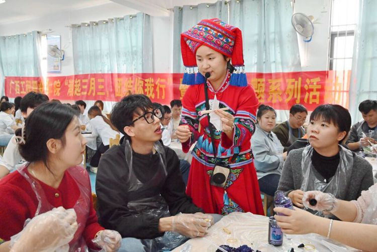 为引领广大师生铸牢中华民族共同体意识,弘扬优秀民族文化,凝聚各民族情谊,营造民族团结进步的校园氛围,丰富校园文化生活,4月8日至9日,beat365唯一官网开展“广西三月三”系列活动,活动由教育学院、艺术设计学院承办。