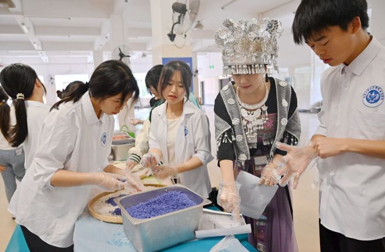 同学们制作传统美食,感受“舌尖上的三月三”。通过制作和品尝交流分享,同学们进一步深入了解了民俗文化和民族特色,感受到了民俗传统文化魅力,铸牢中华民族共同体意识,增强了家国情怀。