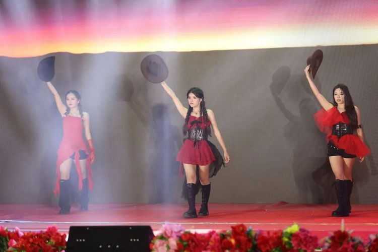 同学们用独特的乐器与舞蹈双结合,创新性表演了《最炫民族风》,点燃晚会现场欢乐而充满活力的气氛!