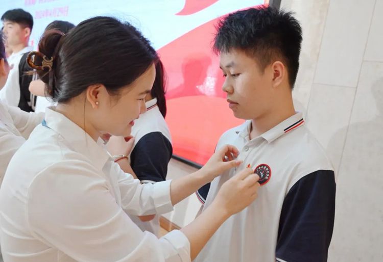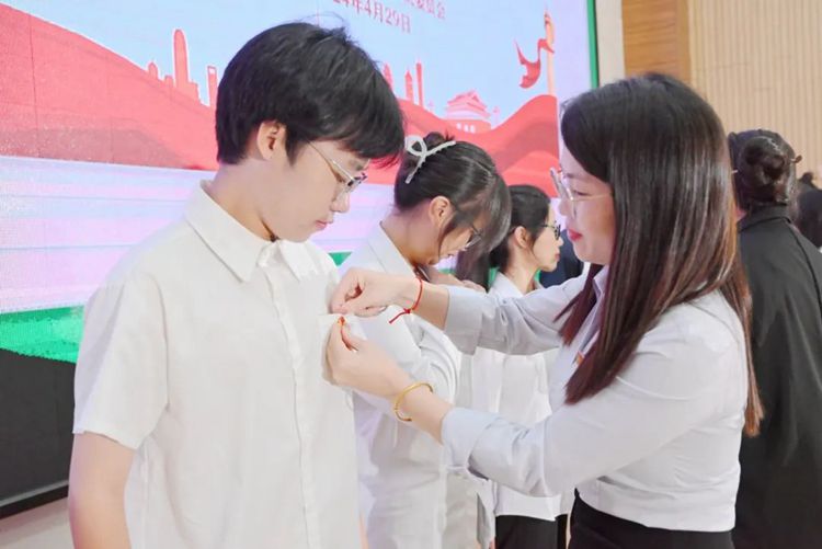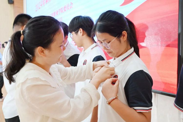党委副书记黄秋霞、团委书记李丽清及各二级学院分团委书记为新团员代表佩戴团徽。