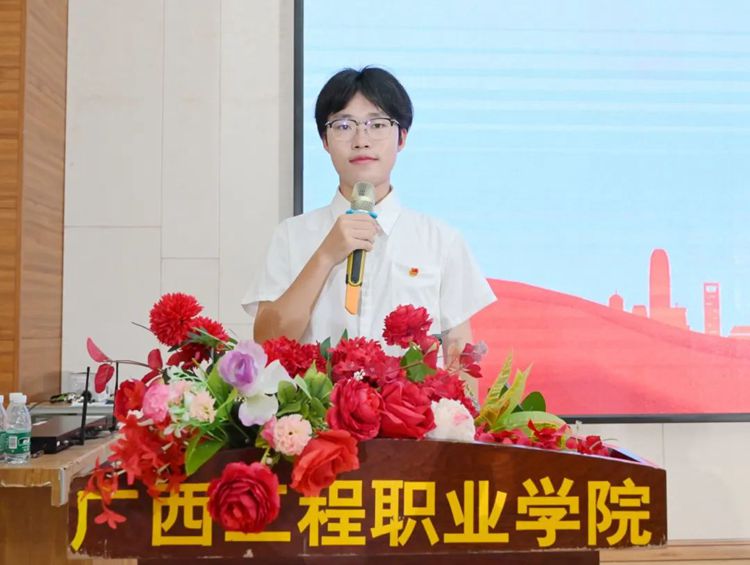 奋斗是青春最亮丽的底色,行动是青春最有效的磨砺。黄秋霞副书记最后对全体共青团员提出三点要求:第一,要始终坚守共青团的政治使命。即以党的旗帜为旗帜,以党的意志为意志,以党的使命为使命,听党话,跟党走。第二,要严格履行团员义务,思想上、行动上要同步加入团组织。第三,要严于律己,遵规守纪,做同学中的表率。希望全体团员用敏锐的眼光去观察社会,用清醒的头脑思考人生,用智慧的力量创造未来。不负韶华、不负时代、不负社会、不负学校、不负父母,在青春的赛道上奋力奔跑,争取跑出当代青年的最好成绩,为学校高质量发展贡献青春力量。