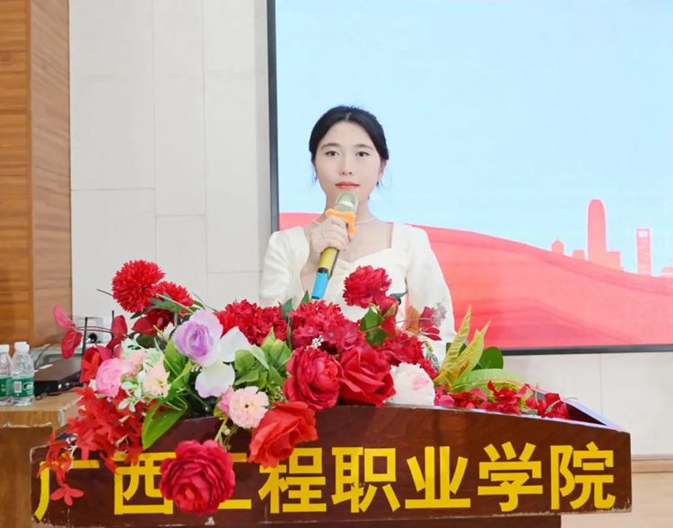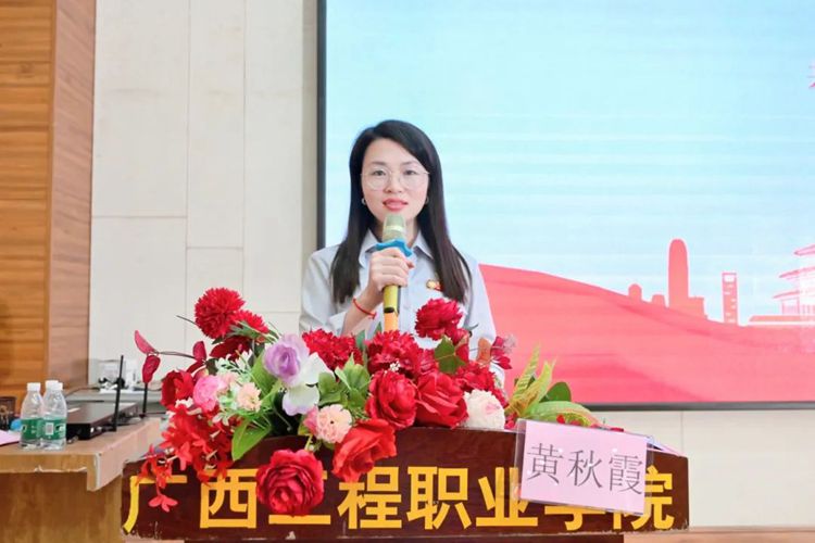 党委副书记黄秋霞讲话,她向光荣加入共青团的173名同学们表示热烈的祝贺!向在学校团学工作中辛勤付出的师生表示衷心的感谢!向大家致以节日的问候!