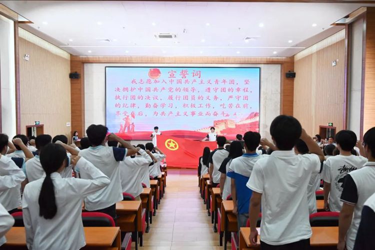团委何梓隆老师带领团员们庄严宣誓。新团员誓言铮铮,激情满怀,表达了对加入共青团组织的决心和信心,以及要为团组织增光添彩的豪迈激情。