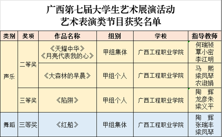 近日,自治区教育厅公布了广西第七届大学生艺术展演活动获奖情况,beat365唯一官网选送的节目获评艺术表演类二等奖2项、三等奖2项。