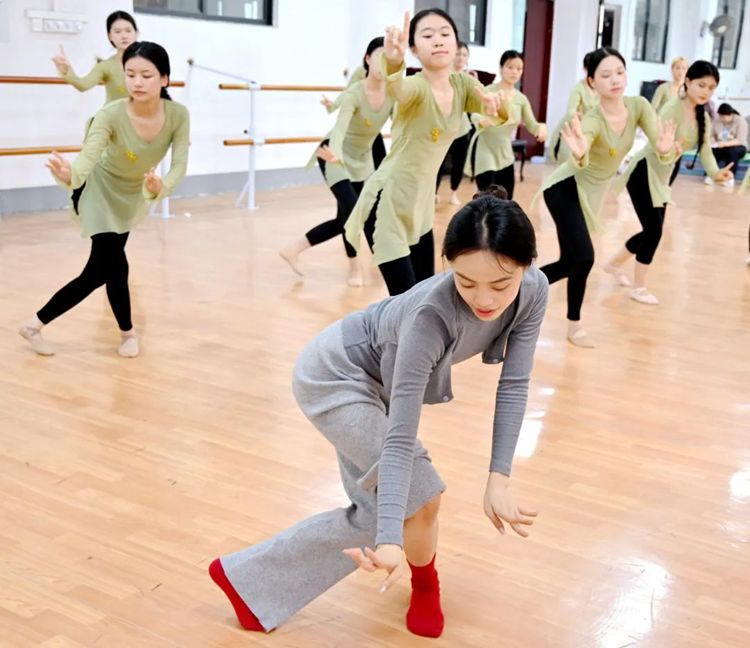 课堂上,黄雯靖老师详细讲解古典舞的基本动作、技巧和表现形式等内容,并亲身示范,以培养学生肢体动作的协调性和对音乐节奏的感知能力,提升她们的审美艺术和表演能力。