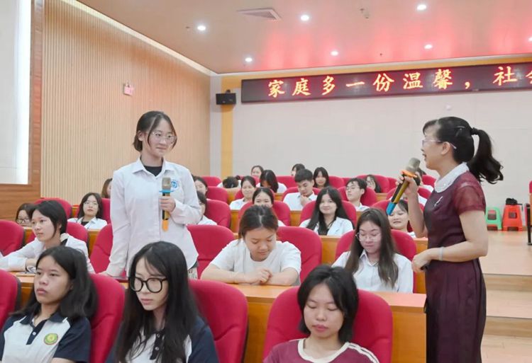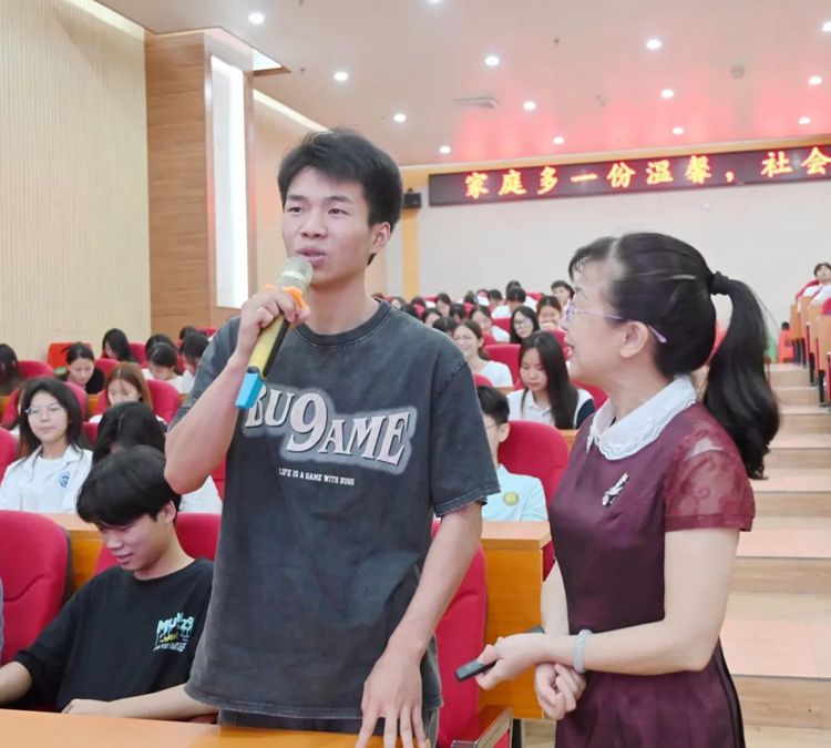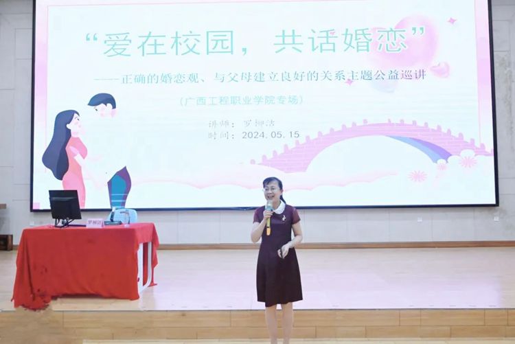 广西婚调专家罗柳洁作题为《爱在校园,共话婚恋》的“正确的婚恋观、与父母建立良好的关系”主题公益宣讲。罗柳洁老师的授课方式独特而富有感染力,宣讲的话题能让同学们产生强烈的共鸣,同时激发同学们更深层次地思考,为引导同学们树立正确的恋爱观,与父母建立良好的关系指明了方向。