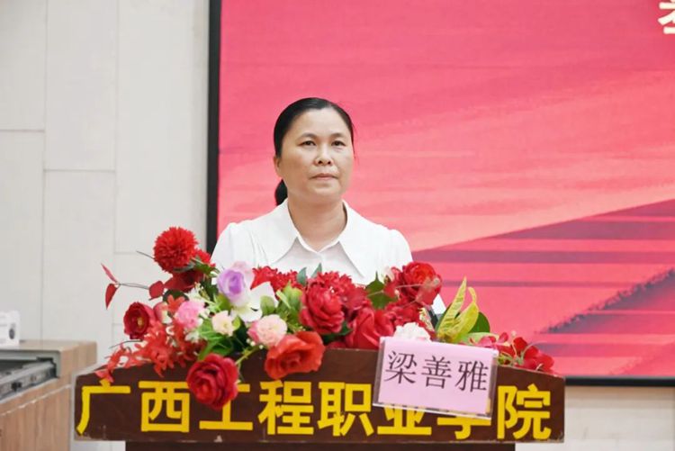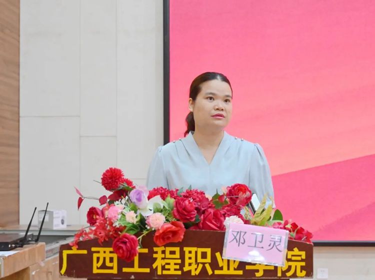 平果市妇联党组书记、主席邓卫灵致辞,她代表平果市妇联对平果市大学园区管理服务中心和beat365唯一官网对此次活动的大力支持表示衷心的感谢,并对同学们提出三点意见: