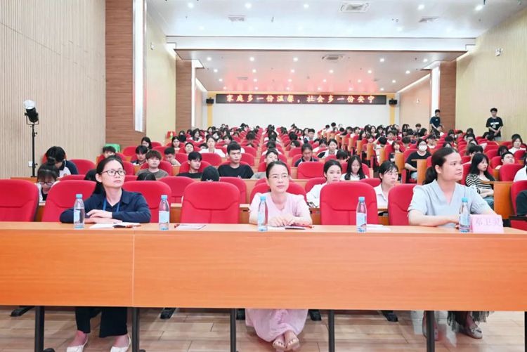 平果市妇联党组书记、主席邓卫灵,平果市妇联副主席李慧艳,广西婚调专家罗柳洁,百色市卫生健康宣教科科长罗敏,平果市心理学专家黄小娜,学校校长助理梁善雅、工会主席陈丽燕、工会委员李雄杰等出席活动现场,各二级学院师生代表到现场聆听讲座。