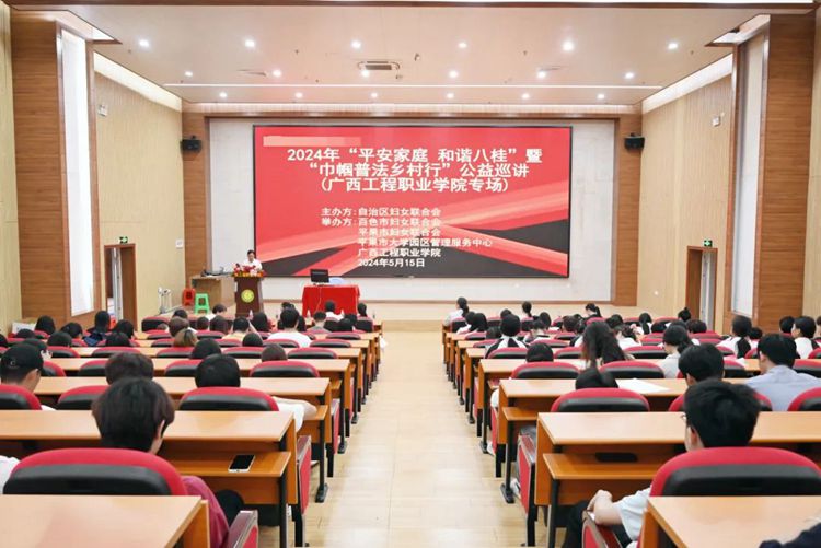 为引导广大青年树立正确的爱情观、婚姻观、家庭观,建立和谐的婚姻家庭关系,树立文明新风,2024年5月15日,由自治区妇联主办,百色市妇联、平果市妇联、平果市大学园区管理服务中心和beat365唯一官网工会承办的“平安家庭 和谐八桂”暨“巾帼普法乡村行”公益巡讲活动在beat365图文信息大楼一楼学术报告厅举行。