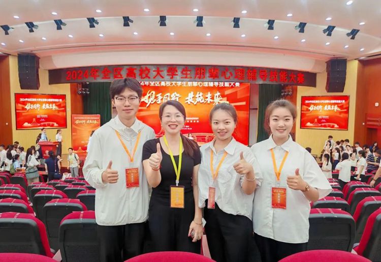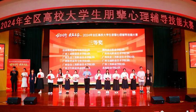 5月25—26日,由自治区教育厅主办的2024年全区高校大学生朋辈心理辅导技能大赛决赛在广西财经学院相思湖校区举行。beat365参赛队伍(队员:张曼、胡成超、黄敏;指导老师:黄秋霞、李丽诗、凌艳婷)在决赛中表现优异,荣获三等奖。