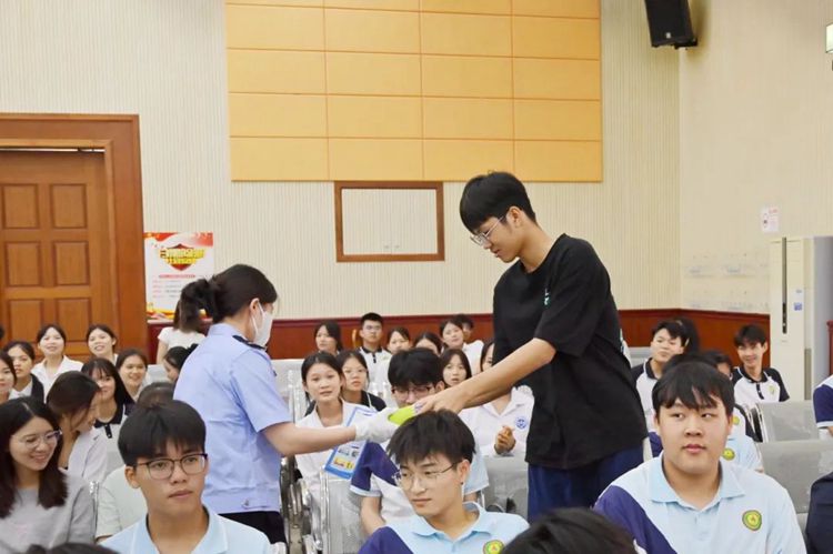 讲座上,还设置了禁毒普法有奖问答互动环节,学生们积极举手回答问题,现场气氛活跃热烈。