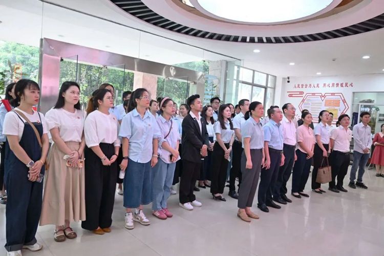 参观学习结束后,参加活动的党员干部教师一起重温入党誓词。