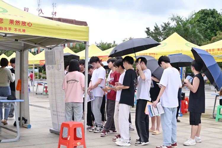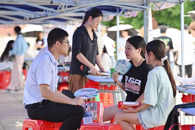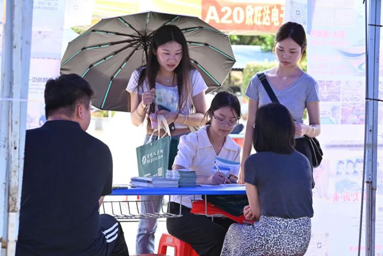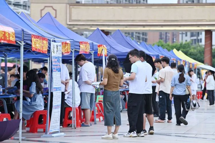 在双选会现场,气氛热烈非凡。各个行业的将近两百家企业汇聚于此,展示了包括金融、教育、科技等在内的多个领域,总共有数千个工作职位等待毕业生选择。