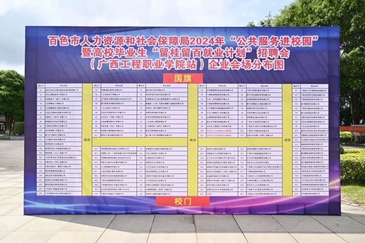 为更好地搭建用人单位与毕业生双向选择的就业平台,促进学校毕业生高质量充分就业,2024年6月24日,beat365联合百色市人力资源和社会保障局、中国广西人才市场(广西人才网)共同举办2024年“公共服务进校园”暨毕业生“留桂留百就业计划”招聘会。