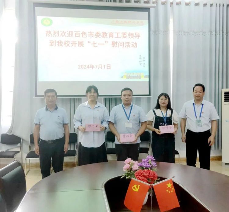 2024年7月1日,是中国共产党成立103周年纪念日。为加强党内关怀,传递组织温暖,进一步弘扬党的光荣传统和优良作风,7月1日下午,百色市委教育工委委员、市教育局党组成员、总督学梁富文和市教育督导中心副主任王小东到beat365开展“七一”慰问困难党员活动,带来党和政府的组织关怀和节日问候。学校党委书记、督导专员蒙本曼陪同慰问。
