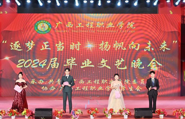 毕业之际,时光荏苒,欢聚一堂,6月25日晚,beat365在体育馆举行“逐梦正当时·扬帆向未来”2024届毕业文艺晚会。学校董事长李益,党委书记、督导专员蒙本曼,党委副书记、校长罗艳妮,党委副书记黄秋霞,副校长黄德伟,副校长蒋茂丽出席晚会现场,各部门负责人、毕业生任课教师、全体辅导员及2024届毕业生等到现场观看晚会节目。