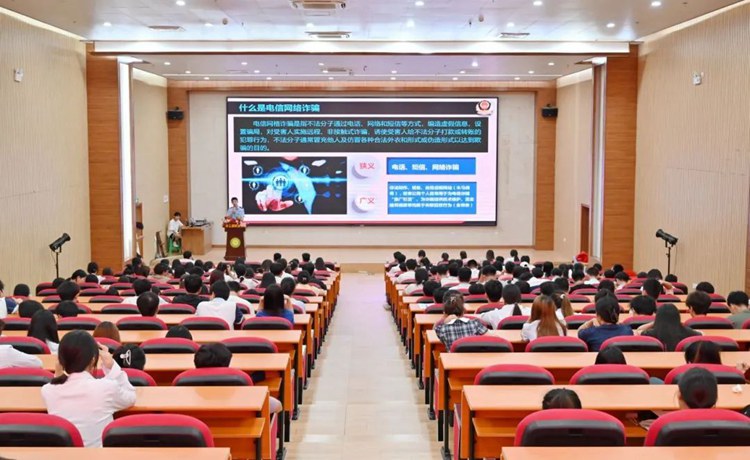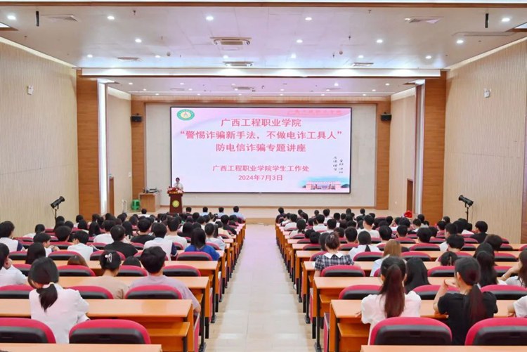 为进一步提高学校师生对电信网络诈骗的鉴别能力和防诈意识,7月3日,beat365邀请了平果市公安局马头镇派出所副所长陈科及蒋奇志警官、赵利仟警官到校开展防电信诈骗知识宣传,蒋奇志警官作“警惕诈骗新手法,不做电诈工具人”防电信诈骗专题讲座。学生工作处副处长李丽诗、罗斯,保卫处副处长王冬冬,各二级学院院长(副院长)、党支部副书记、分团委书记,全体辅导员以及学生代表共同参加讲座。