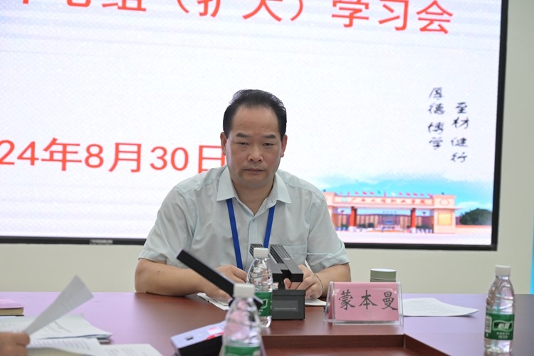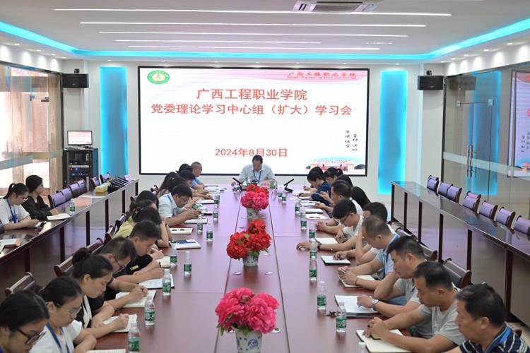 8月30日下午,学校党委在图书馆一楼大数据中心,召开2024年第三次党委理论学习中心组(扩大)学习会,党委书记、督导专员蒙本曼,纪委书记、副校长彭高彬,党委副书记黄秋霞,党委委员、组织部部长、副校长蒋茂丽,党委委员、宣传部部长黄丽娟,各党(总)支部书记、副书记,各部门负责人等参加学习会。党委书记、督导专员蒙本曼同志主持会议。