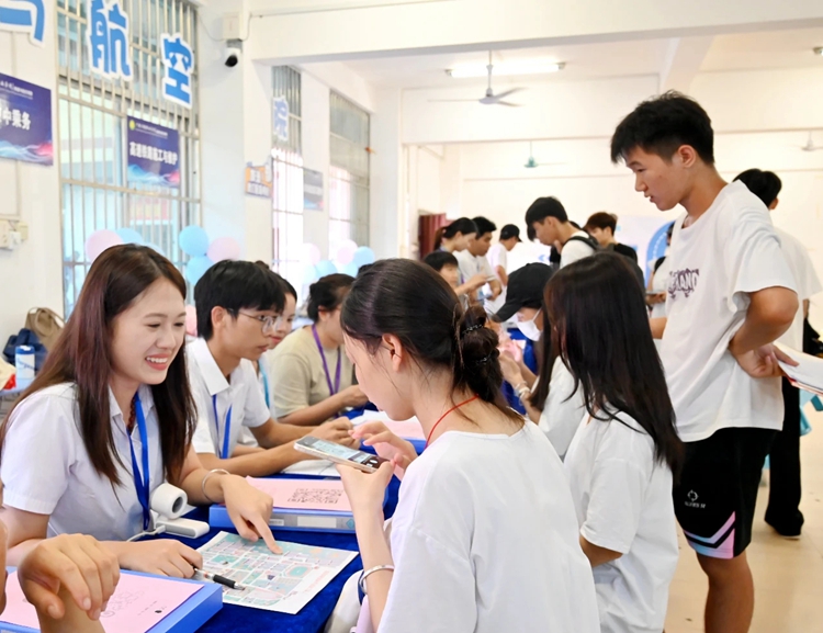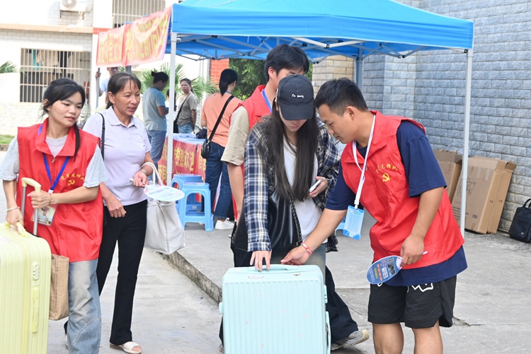 图为志愿者们热心服务新生及家长