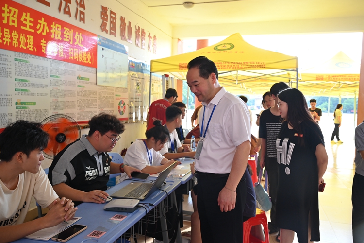 为确保迎新工作顺利开展,学校领导高度重视、靠前指挥,统筹推进各项迎新准备工作,深入校内各迎新点了解迎新工作开展情况以及新生报到情况,慰问一线工作人员,并与家长和新生们亲切交流,关心他们的到校情况和入学感受,勉励同学们尽快融入崭新的大学生活,勤奋学习,练就过硬本领,在大学学习生活中学有所成。