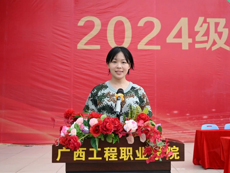 2024级新生代表铁道与航空学院高速铁路客运服务专业黄覃晴同学发言。她代表全体新生承诺在军训中努力做到服从命令,听从指挥;锻炼意志,苦练基本功;发扬军训作风,培养优良品格。同时,号召全体同学把在军训期间养成的良好品德和作风带到今后的学习中去,高标准、严要求规范自己的言行,遵守学校的各项规章制度,踏实做人、刻苦学习,力争在新的起跑线上步伐整齐,一同前进,成为一名德智体美劳全面发展的大学生。