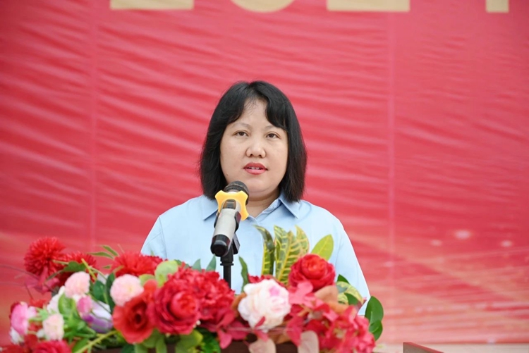图为党委副书记、校长罗艳妮讲话