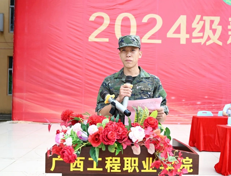 教官代表杨和信发言,表示全体承训教官将拿出过硬素质、过硬作风,做到科学组训、因人施训、安全促训,确保高质量完成军训任务。也希望同学们在军训期间把自己当作一名真正的军人,严格要求自己,继承和发扬不怕苦、不怕累,艰苦奋斗的精神,克服困难,努力拼搏,团结协作,以实际行动交出自己学习过程中的第一份满意的答卷,以崭新的精神面貌去迎接繁忙而又充满激情的学习和生活。