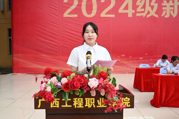 图为2024级新生代表黄覃晴同学发言