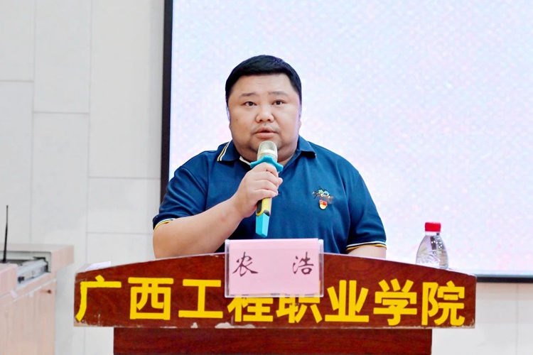 图为平果市大学园区党工委专职副书记农浩主持宣讲报告会