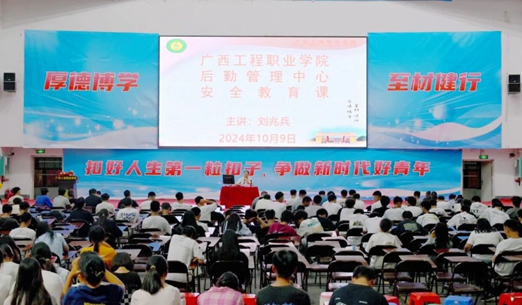 后勤管理中心主任刘兆兵作《后勤管理中心安全教育课》专题讲座。讲座内容主要涵盖宿舍管理规定、公共设施设备维修流程、用电安全,以及节水、节粮和光盘行动等方面。他希望同学们能够严格遵守后勤服务管理各项规定,为资源节约贡献自身力量,共同打造绿色、节约型校园。