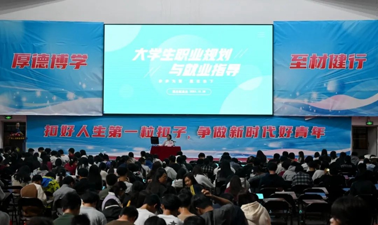 招生就业处科长韦润萍作《大学生职业规划与就业指导》专题讲座。她通过大量典型案例,全面而深入地剖析了当前就业形势。剖析内容既包括热门行业的动态发展趋势,也对不同岗位必备技能与素养进行了详细阐述,要点皆是精华,让在场学子收获颇丰。