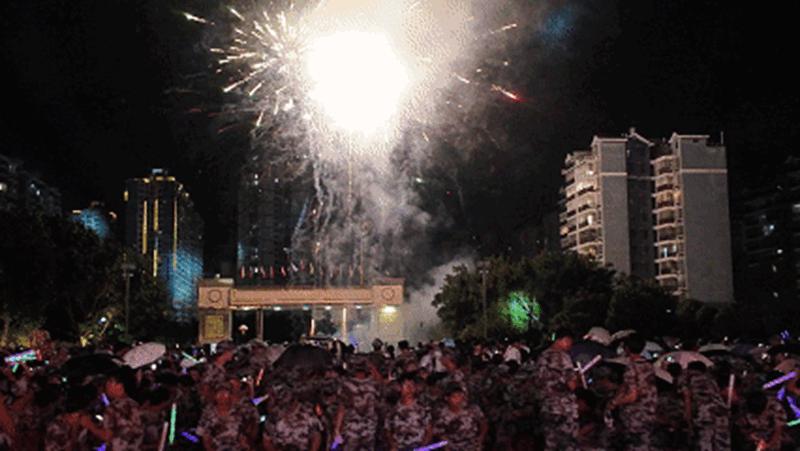 话音刚落,几声清脆的声响划破夜空,绚烂的烟火骤然绽放。金色、银色、红色的火花在墨色夜幕中交织,时而如流星般划过天际,留下璀璨轨迹;时而似花朵般尽情舒展,绽放层层绚烂,将整个校园映照得宛如梦幻仙境。现场的新生们纷纷举起手机,迫不及待记录下这震撼又浪漫的瞬间,欢呼声、惊叹声此起彼伏,瞬间点燃了全场的热烈氛围,也为这场晚会拉开了极具仪式感的序幕。