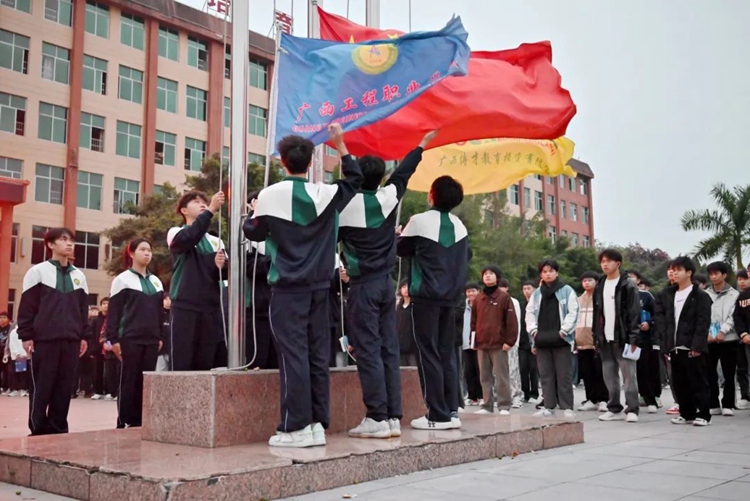 12月9日上午7:20,学校在鲁班广场举行2024年宪法宣传周升旗仪式暨国旗下的思政课。副校长蒋茂丽、党委宣传部部长黄丽娟、法务部部长卢保日及相关部门负责人出席仪式。仪式由经济管理学院党支部书记、院长覃清香主持。教师代表及2024级新生、2023级学生代表参加升旗仪式。