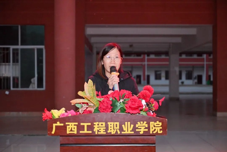 图为经济管理学院党支部书记、院长覃清香主持仪式