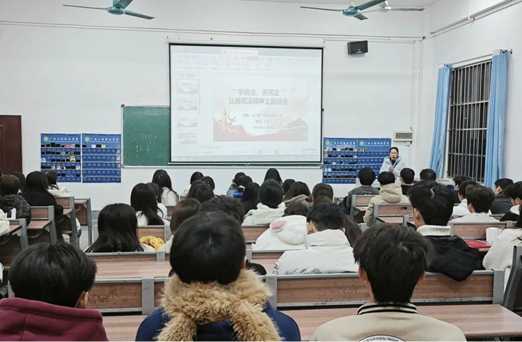 为了让同学们更加深入地了解宪法,学校各二级学院组织开展宪法学习主题班会,通过班会普及宪法知识、弘扬宪法精神,树立正确的法治观念,增强学生的法治意识,在日常生活中积极践行宪法的精神和原则,共同构建平安和谐的校园环境。