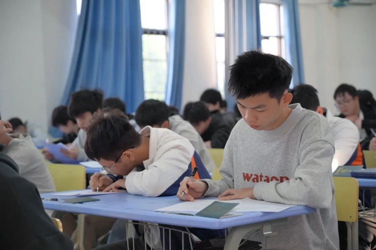 秩序井然的考场内,同学们沉着冷静,周密思考,奋笔疾书。鲲鹏之志,尽在挥毫指间彰显!
