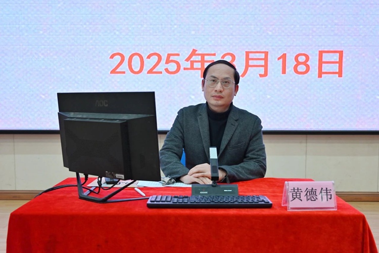 图为副校长黄德伟传达全区传达贯彻全国两会精神视频会