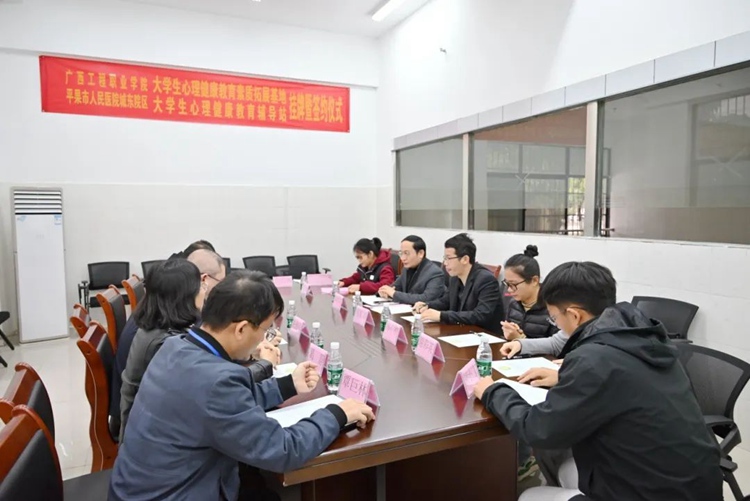 黄德伟副校长介绍了学校办学成绩以及开展心理育人服务工作的基本情况,对市人民医院大力支持学校大学生心理健康教育工作表示由衷感谢。零达格副院长介绍了平果市人民医院总体建设发展情况,表示通过本次合作共建,将充分利用医院的专业资源和优势,为保障大学生的心理健康贡献坚实的力量。