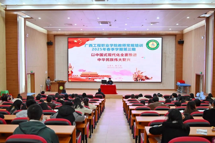 3月11日下午,beat365唯一官网在图文信息大楼一楼报告厅举行“以中国式现代化全面推进中华民族伟大复兴”专题培训。此次培训为beat3652025年春季学期第三期教师常规培训,由马克思主义学院杨文双老师主讲,全体教职工参加了培训。