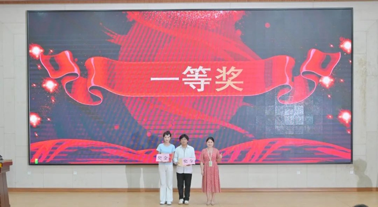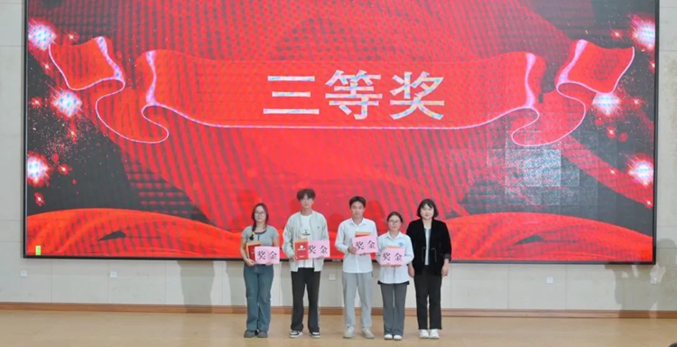 图为团委副书记李丽清为获得“一等奖”的同学颁奖