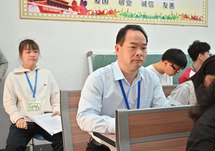 学校党委书记、督导专员蒙本曼深入教学一线,认真聆听并细致评析教师们的公开课。