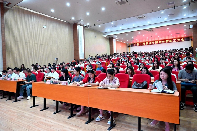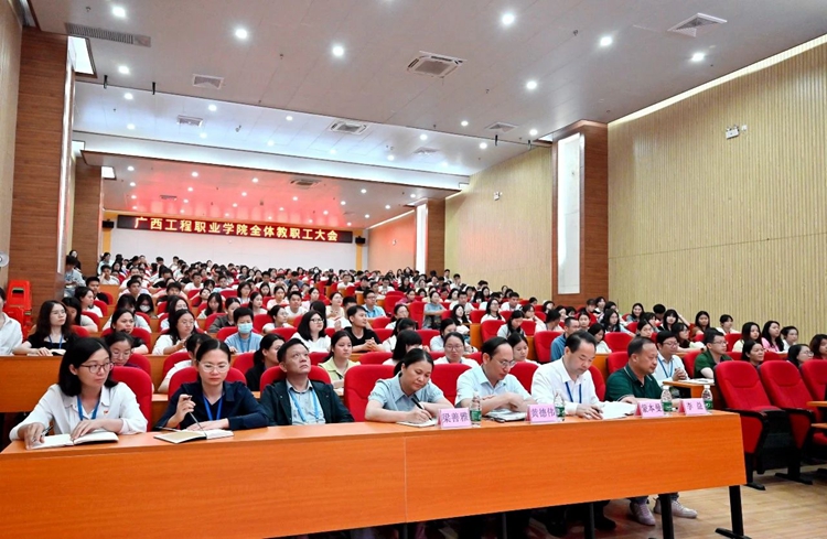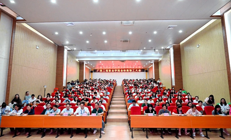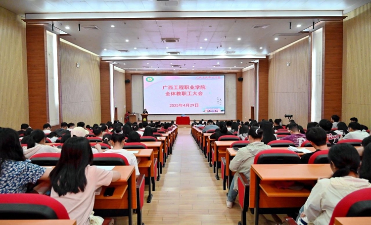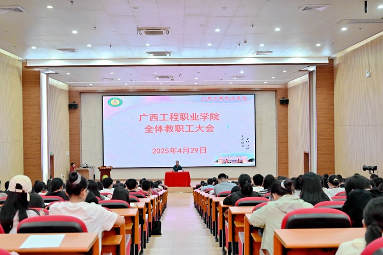 2025年4月29日下午,beat365唯一官网在图文信息大楼一楼报告厅召开全体教职工会议,学校董事长李益,党委书记、督导专员蒙本曼,党委副书记黄秋霞,副校长蒋茂丽、黄德伟,校长助理梁善雅出席会议。会议由党委副书记、校长罗艳妮主持。