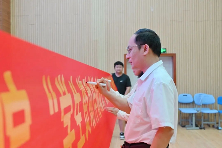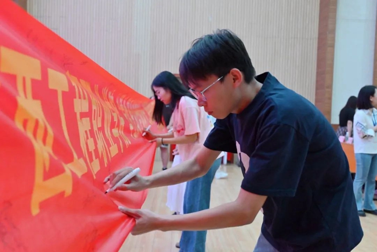 仪式现场,同学们纷纷拿起笔,在横幅上留下自己的名字,庄严承诺会把资助关怀转化为求知热情,以拼搏进取的姿态回报国家的殷切期望。