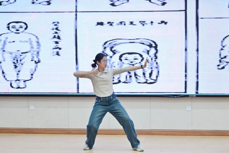 随后,医务人员带领同学们开启了实践体验,跟随指导,一招一式学习八段锦健康操,感受传统功法对身体气血的调和作用。