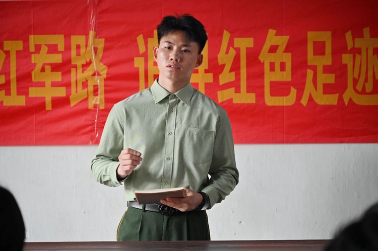 学生代表邓文友和大家分享了他的参观感悟,号召大家将红色精神融入日常的点滴行动中,以实际行动传承红色基因,赓续精神血脉。