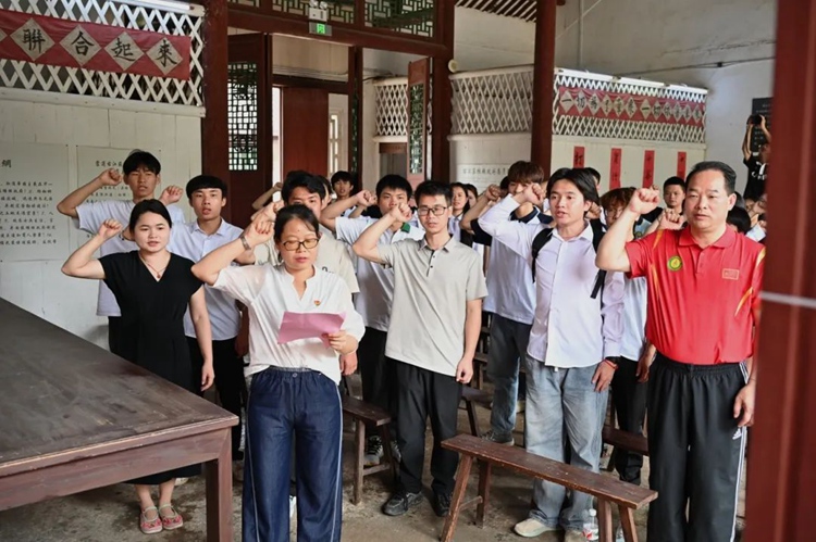 随后,马克思主义学院副院长李丽诗带领全体师生党员在馆内重温入党誓词。全体师生党员以铮铮誓言,表达不负先辈遗志,不忘初心使命,踔厉奋发进取的坚定信念和决心。