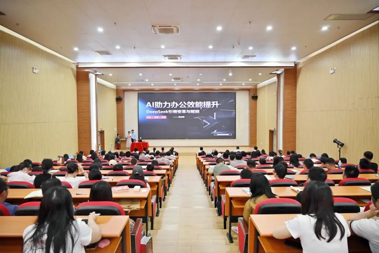 陈克福老师以DeepSeek等AI工具为例,采用理论与实践相结合的方式,为老师们全景化展现AI应用场景。授课过程中,他以生动有趣、深入浅出的风格聚焦“AI职场效能提升”主题,通过案例推演与实操训练,系统讲解AI在文案创作、教学数据分析、智能化设计、Excel数据处理等领域的落地应用;同时紧密围绕教职工实际需求,深入覆盖智能工具深度使用、高效提示词设计优化、数据快速整理分析、公文写作效能提升、WPS与PPT智能辅助创作等职场核心功能。课程内容干货满满,既兼具前沿理论支撑与实践指导价值,又帮助全体教职工运用AI工具解决实际问题,提升工作效率,优化工作流程。