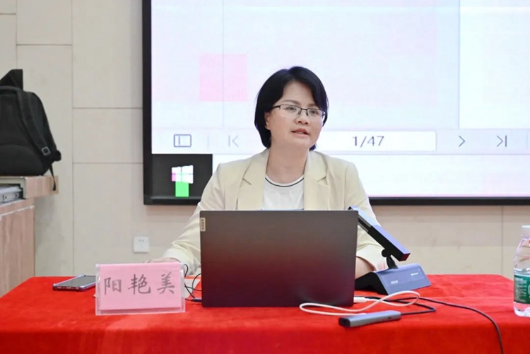 图为广西建设职业技术学院教师发展中心主任阳艳美教授作专题培训